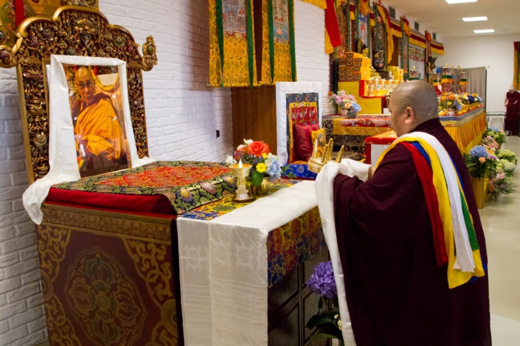 El 6 de julio, Rinpoché encabezó la sangha de Mindrolling Internacional, junto con muchos miembros de la sangha de diferentes centros de Dharma, en la celebración del aniversario auspicioso de Su Santidad el Dalai Lama, con ofrecimientos de mandala y plegarias de larga vida para Su Santidad.