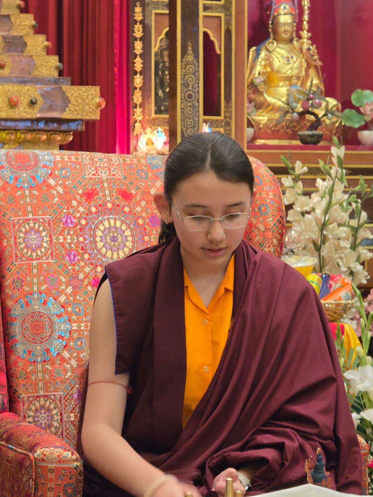 Durante estos días en Mindrolling llenos de bendiciones de Kyabje Shechen Rabjam Rinpoché que otorga las trasmisiones Kama, todos los miembros de la sangha se regocijaron en este evento alegre y sintieron gran deleite viendo las cualidades excelentes de Jetsün Rinpoché, sabiendo que Rinpoché sigue estudiando, entrenándose, y que recibe todas las trasmisiones necesarias para sostener completamente el Linaje Mindrolling en el futuro. Para todos los reunidos fue una gran alegría ver que Jetsün Rinpoché sin duda sostendrá la luz de sabiduría para la próxima generación que busca el Dharma genuino.
