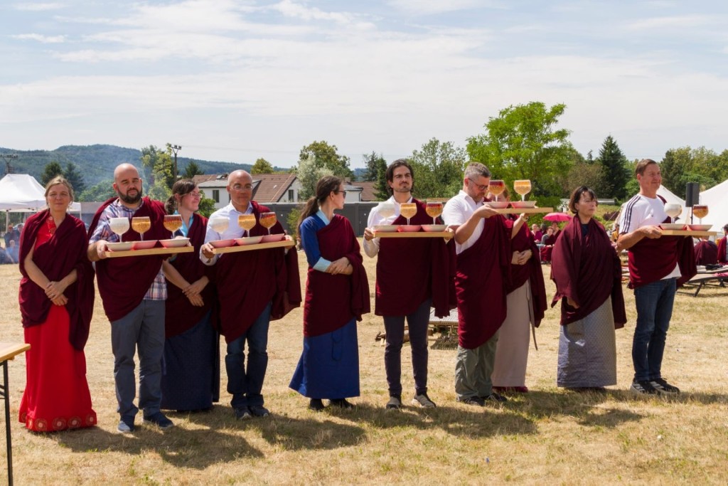 En julio del 2025, la sangha de Mindrolling Internacional se reunió en la República Checa para recibir enseñanzas y transmisiones de Minling Jetsün Khandro Rinpoché en el retiro anual de la Asamblea Vajra. El retiro comenzó el 5 de julio, coincidiendo con el día más auspicioso de Guru Rinpoché, Teda Tshe Chu. Rinpoché guió a la sangha en el ofrecimiento de tshog (ganachakra en sánscrito) a Guru Rinpoché en este día auspicioso.